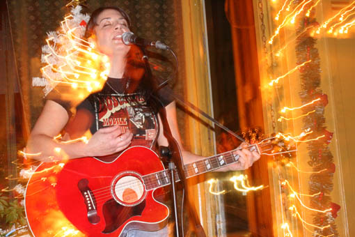 Celebrating the holidays at The Goldhawk in Hoboken. Bobby Syvarth, Michelle Vecchione and Marafanyi Percussion Project