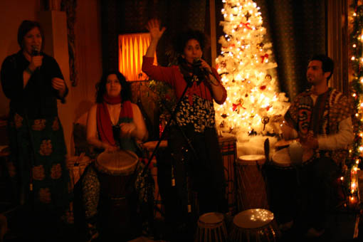 Celebrating the holidays at The Goldhawk in Hoboken. Bobby Syvarth, Michelle Vecchione and Marafanyi Percussion Project