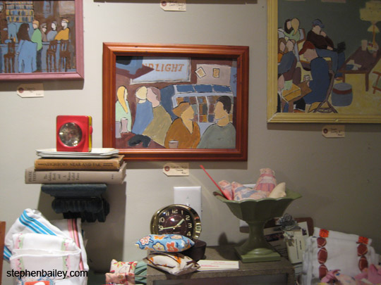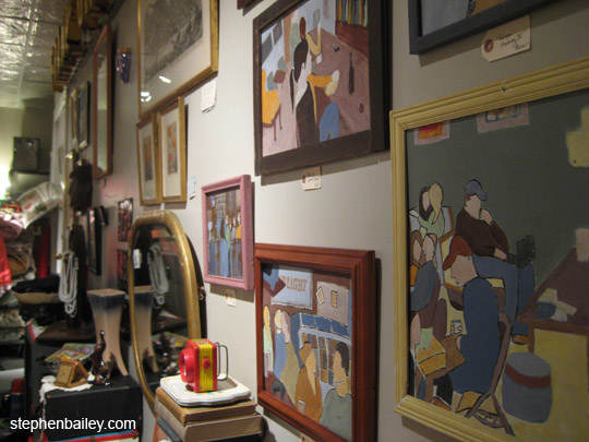 The art of David Ribyat in an intimate setting. MacKey Blue was a perfect setting for showing art surrounded by antique miscellany.