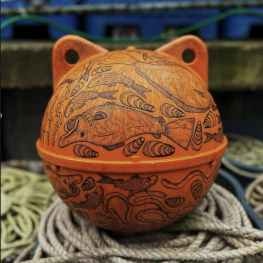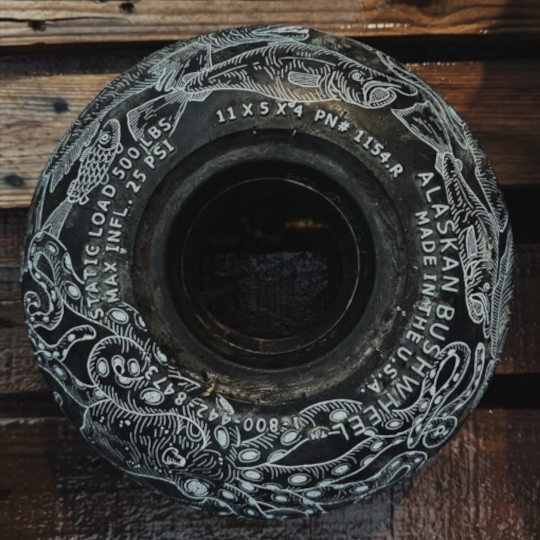 Her connection to the commercial fishing industry — as well as the nature of Alaska itself — is apparent in the etchings on various objects found on the island she calls home. It can also be felt in the way she presents it, the photos she shares, and the very tone of her voice as she does so. True art — no matter the subject — is an honest extension of the artist.