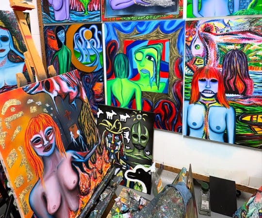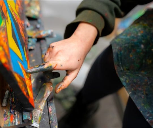 A self-taught artist, Sullivan’s work is vibrant and emotional. As a finger painter, her hands are her tools. Touching skin to paint to canvas connects to a core that exorcises emotions in a raw, vulnerable way. Color and form pass from her mind to your eyes and can spark a response that is hard to explain. But that’s the whole point. Art should be a mystery and the reaction to that art should be personal.