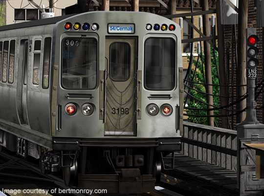 The image above is an excerpt from a larger scene of the Damen Station on the Blue Line in Chicago. Originally unveiled at PhotoShop World Miami in March ’06, it was painstakingly created using Adobe Illustrator and PhotoShop.