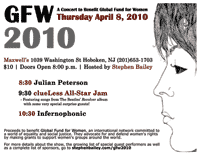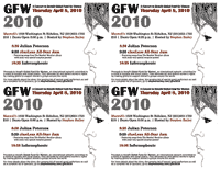 Whether it’s on your own blog, Twitter, Facebook, MySpace or whatever else, I’d love it if you could link to the event. I’ve already taken the liberty of shortening the link for you: http://bit.ly/9scnBe. Also, if you will be tweeting, please try to include this special hashtag #gfw2010.