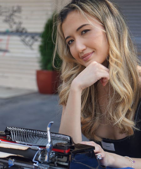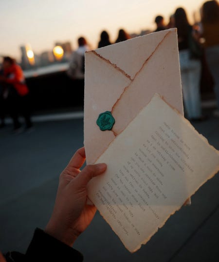 In 2019 — with loneliness as her catalyst — Shana set up a chair and a table topped with a vintage, manual typewriter loaded with handmade paper on a NYC corner. She displayed a sign that said, ‘Custom Poems Written For You. $55.’ There she began creating poems for strangers on demand.